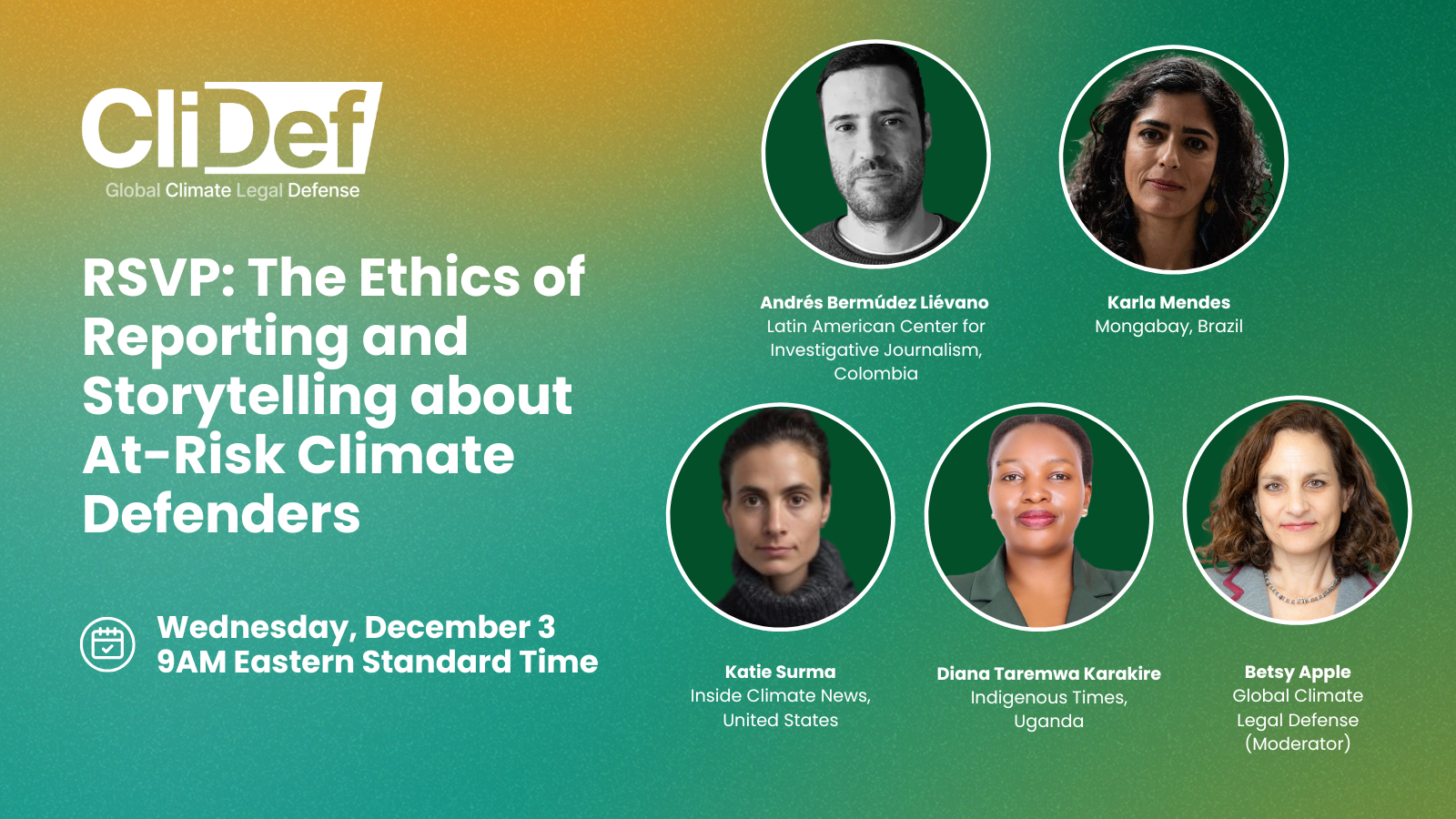 This free webinar, hosted by Global Climate Legal Defense, is for anyone telling stories about climate change who want to do so with people’s safety and security in mind.